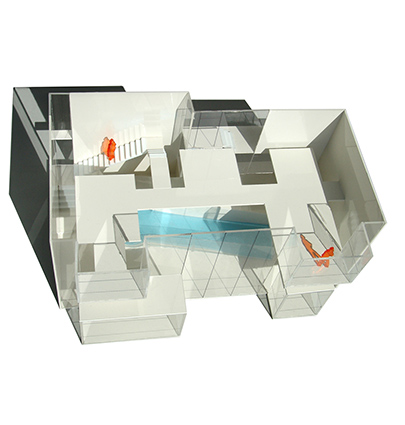Südansicht Modell ohne Dach, Einblick in die Wohnung